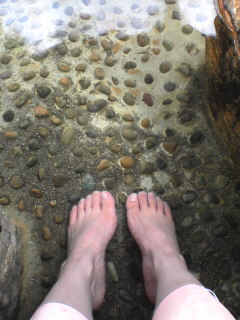 記者会見をやってる間、我々は足湯で疲れた足をほぐしてます。