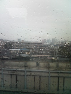雨で見にくい&流れちゃってますが、この窓の先に卒業した中学校があります。修学旅行の時には父兄や在校生が屋上から手を振ってくれて、それが見えるのね。なんか感動するんですよ。