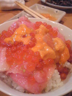 大トロとイクラとウニを載っけた丼を作ったクラモチくん。
