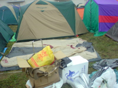 いやあ……、雨が酷いのよね(泣) この中でテント建てるの辛いなあ。