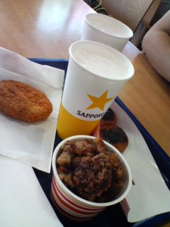 いももち・コロッケ・からあげジンギスカン そして生ビール 地産地消ですな