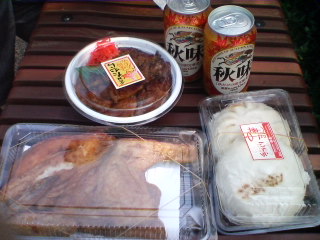 mobile 昨日の昼食 2006年9月3日 日曜日 nao-cha コメントする 新宿伊勢丹・夏の大北海道展 で食材を買い、地下の酒売り場でビールを買い、屋上でプチビアガーデンを開催。 「ニューなると」の鳥唐揚げを、ハナタレロケの音尾くんのように外でかぶりつきたかっただけなんです。 あとは豚丼とジンギスカン饅&富良野ぶた饅