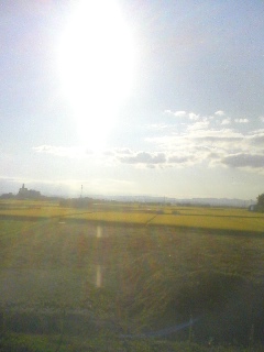 田んぼばかりの山形県に突入。 間もなく赤湯駅です
