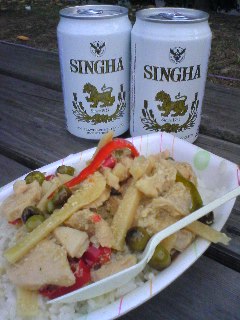お台場で開催のタイのお祭りにきました。 とにもかくにもビールとグリーンカレー