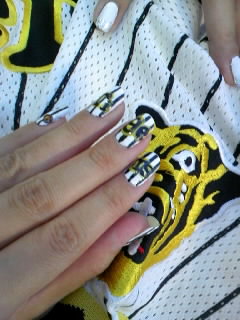ナイス眺めです! 3姉弟でユニフォームに着替え中。 妹の爪は阪神仕様で気合い入ってます