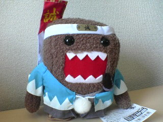 こんなものを買っちまいました。 NHK-BSのキャラクター・どーもくんが新選組の隊服を着た限定ぬいぐるみです。 どーもくんはキャラクター界の中でも結構好きなんですが、今までグッズは持ってませんでした。ところが、このだんだら羽織を着てるものが発売されてると知った途端、通販で取り寄せちゃいましたよ。はっはっは。 「誠」印の隊旗ですが、棒がフェルトで出来てるのでグニャグニャしちゃって威厳がありません。 でもグレーの袴履いてたり、草履履いてたり、ディテールは結構細かいです。 ついでに携帯ストラップ・根付・キーホルダー・耳かきのセットまで買っちゃったよ……。 携帯ストラップって結構買っちゃうね。つけやしないのに。お気に入りのに限って、ちぎれてなくしてしまうワタシ。 どーもくんもちょっとつけるか悩んでます。 さて、天気良いから散歩でも行くかね、ココアどの。 |