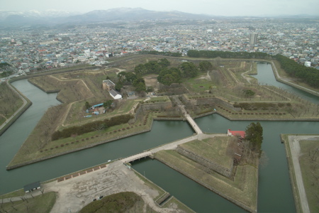 函館では五稜郭タワーにのぼってきました。先日新しいタワーが完成したんですよ。以前のタワーの約2倍の高さになり、随分とカッコよくなりました。旧タワーは残ったままなので、並んでる姿を見ると切なくなってきます。あまりにも旧タワーがショボくて(笑) 新タワー展望台から眺めた五稜郭はさすがに高くなっただけあって全域がバッチリ見られます。 こんな感じ ![]() GR DIGITAL / 21mm ワイコン使って撮影しました。 これこれ、こういう姿を見たかったのよ。 Mon - April 17, 2006